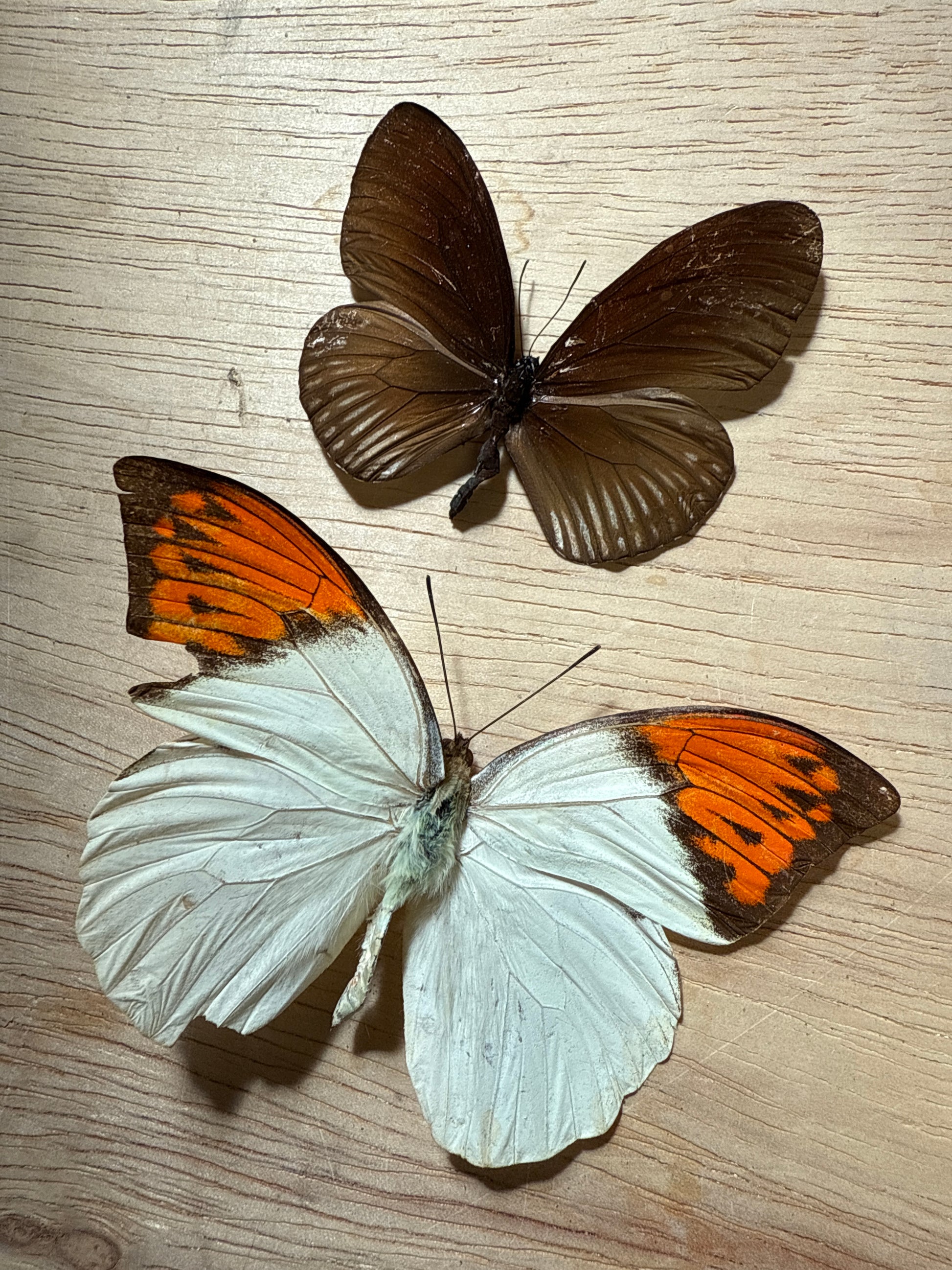 2 spread butterflies with light damage/imperfect spread quality.