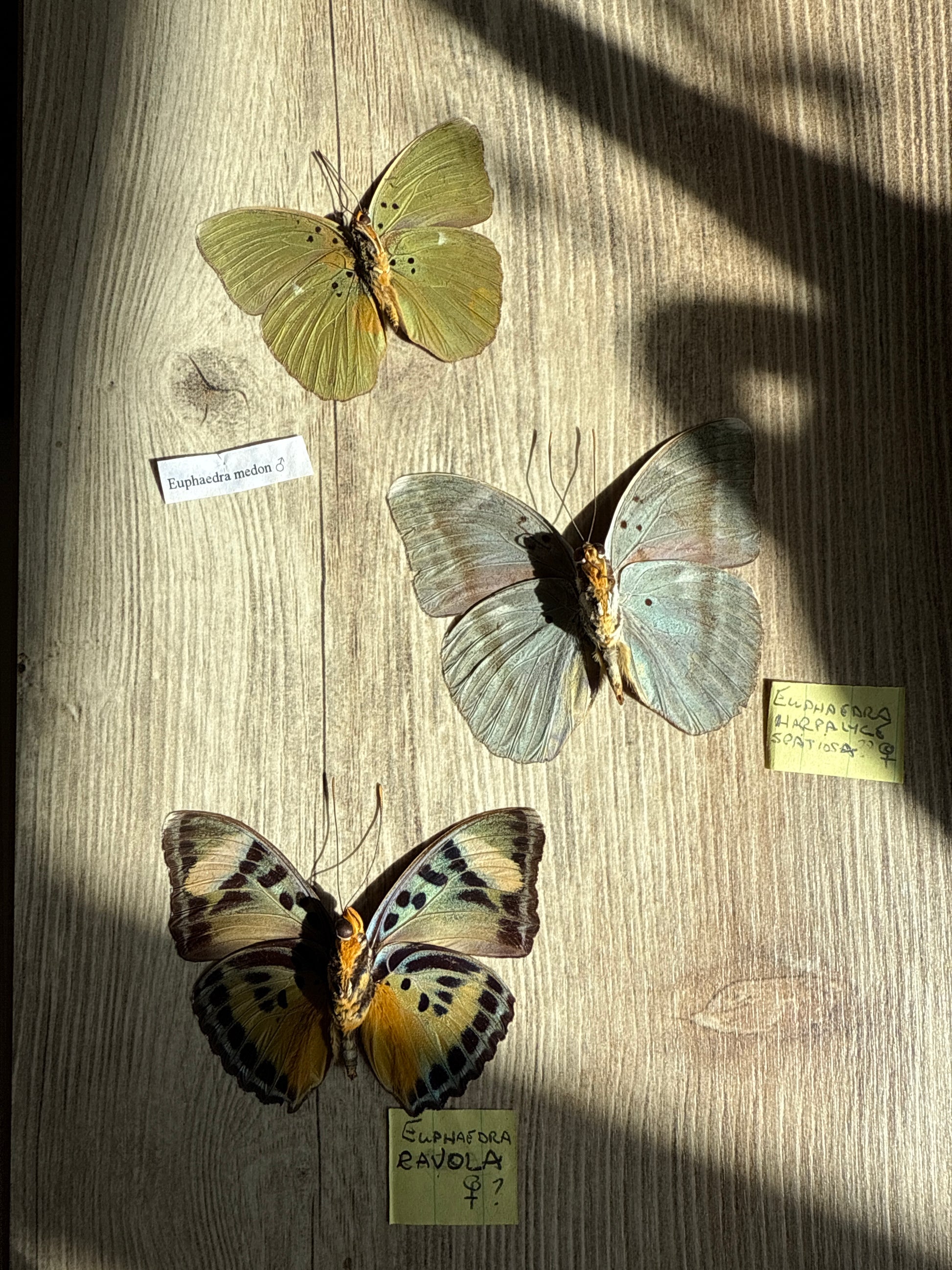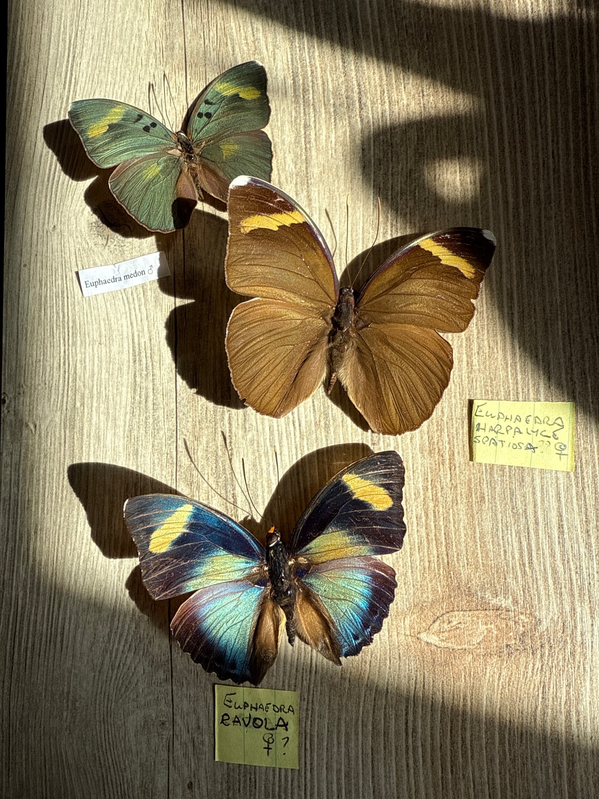 3 spread Euphaedra butterflies with light damage.