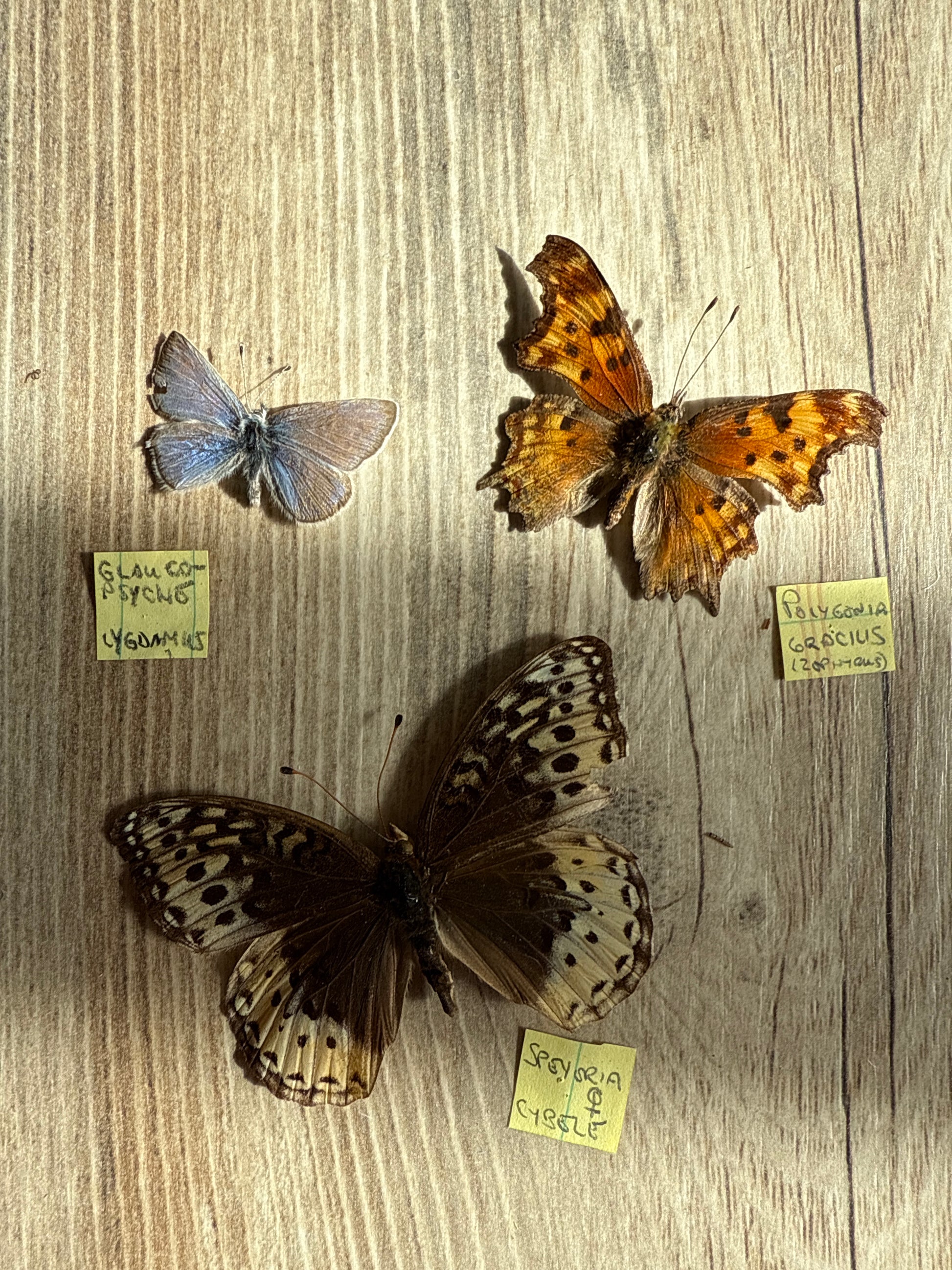 3 spread butterflies, all have some damage