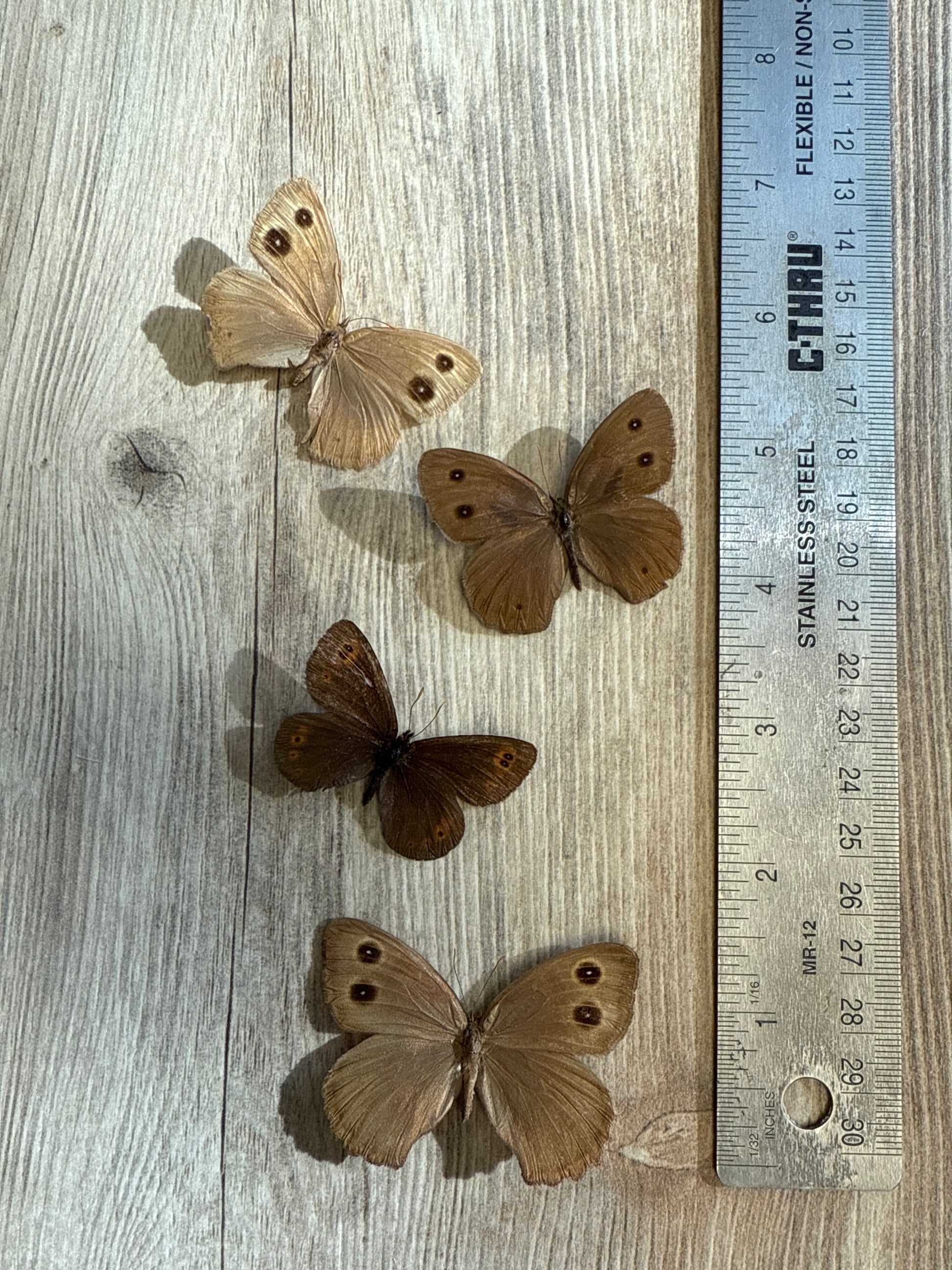 4 spread butterflies in poor condition (all have some damage).