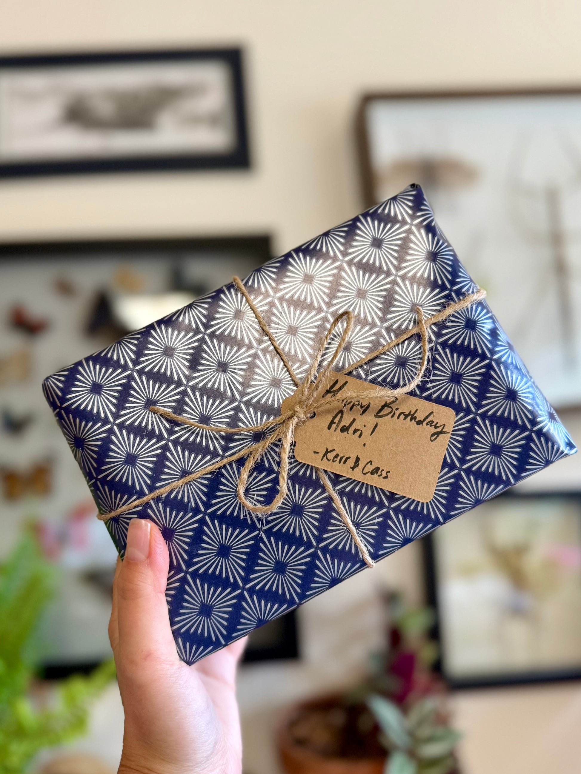 This listing is intended to be purchased with an order that we will gift wrap with wrapping paper, and finish with twine.