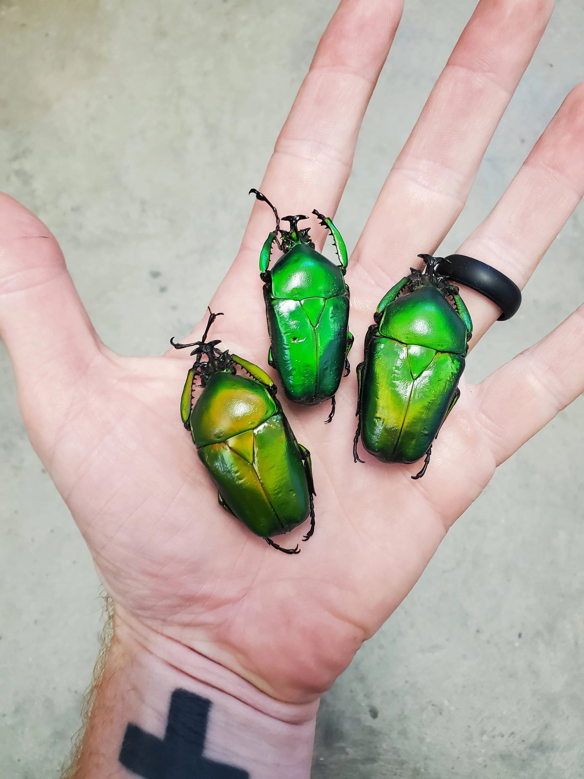BIG Emerald Shiny Green Flower Beetle 'Dicronorhina micans' African Jade Beetle