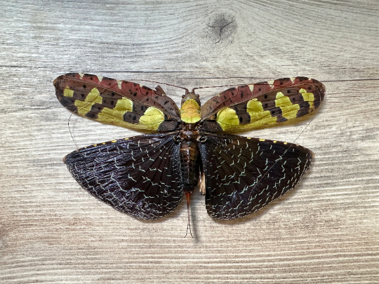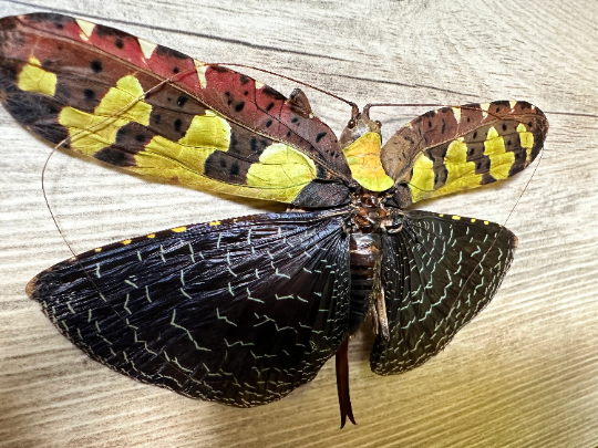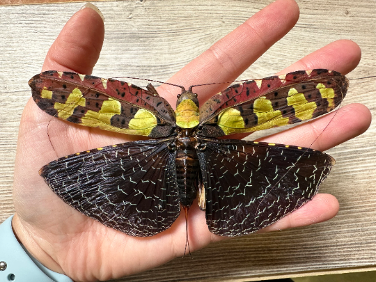 This is the female (which are larger than the males), and has a wingspan of approximately 4.5”.