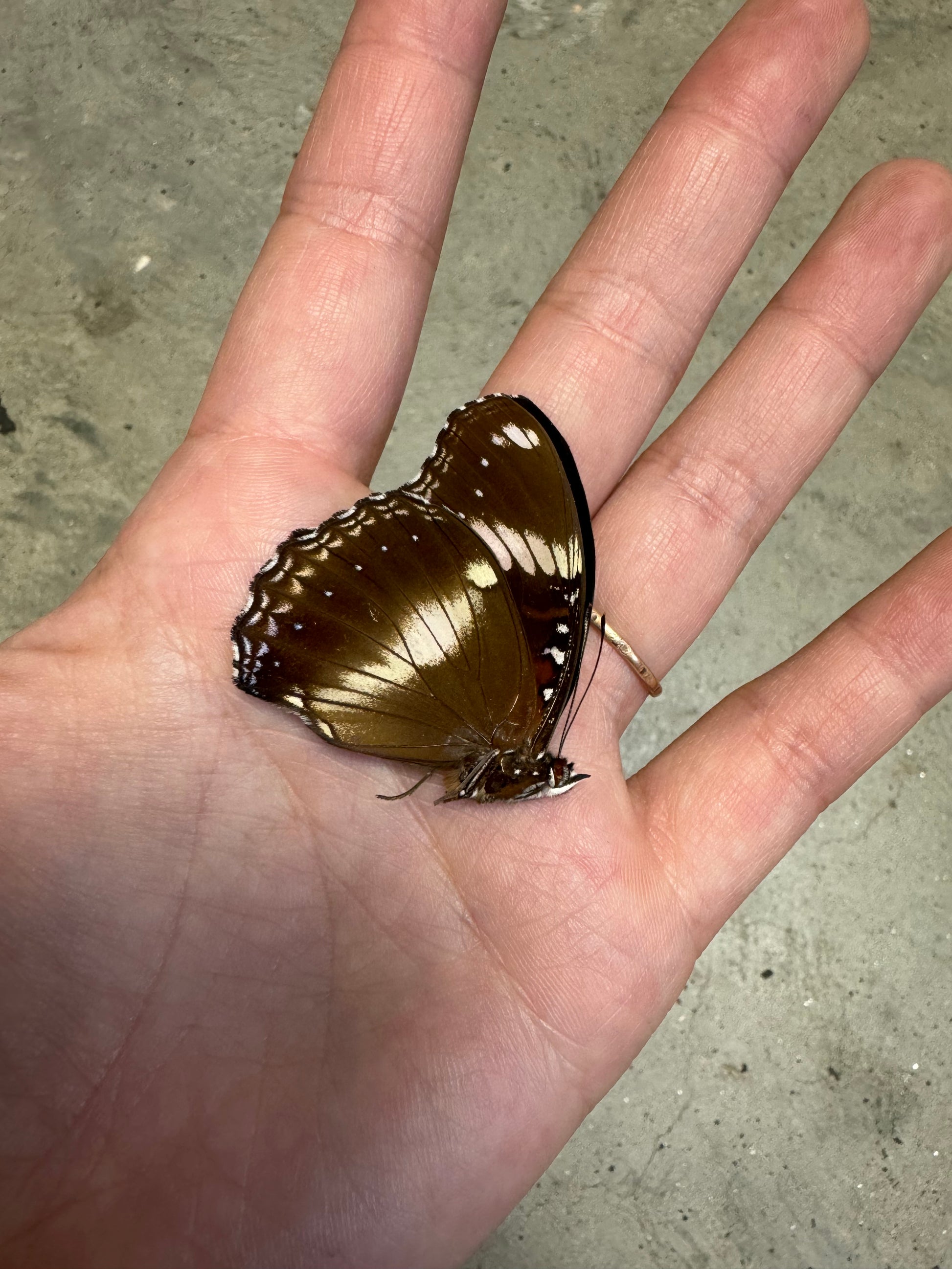 The blue moon butterfly, Hypolimnas bolina has iridescent blue 'moon' spots on the dorsal side. Visibility of the coloration changes depending on the angle! These are the males, which are typically smaller than females.