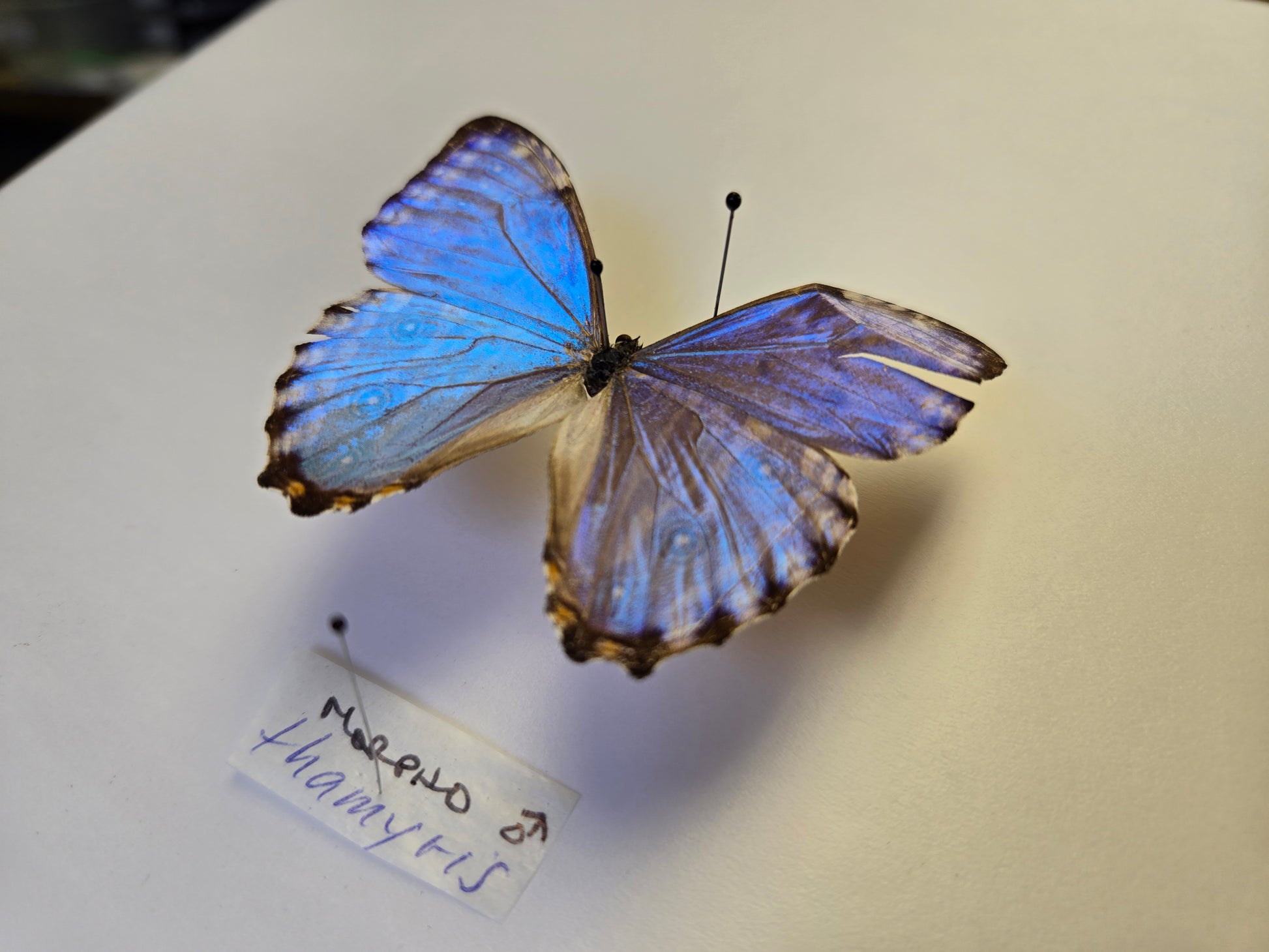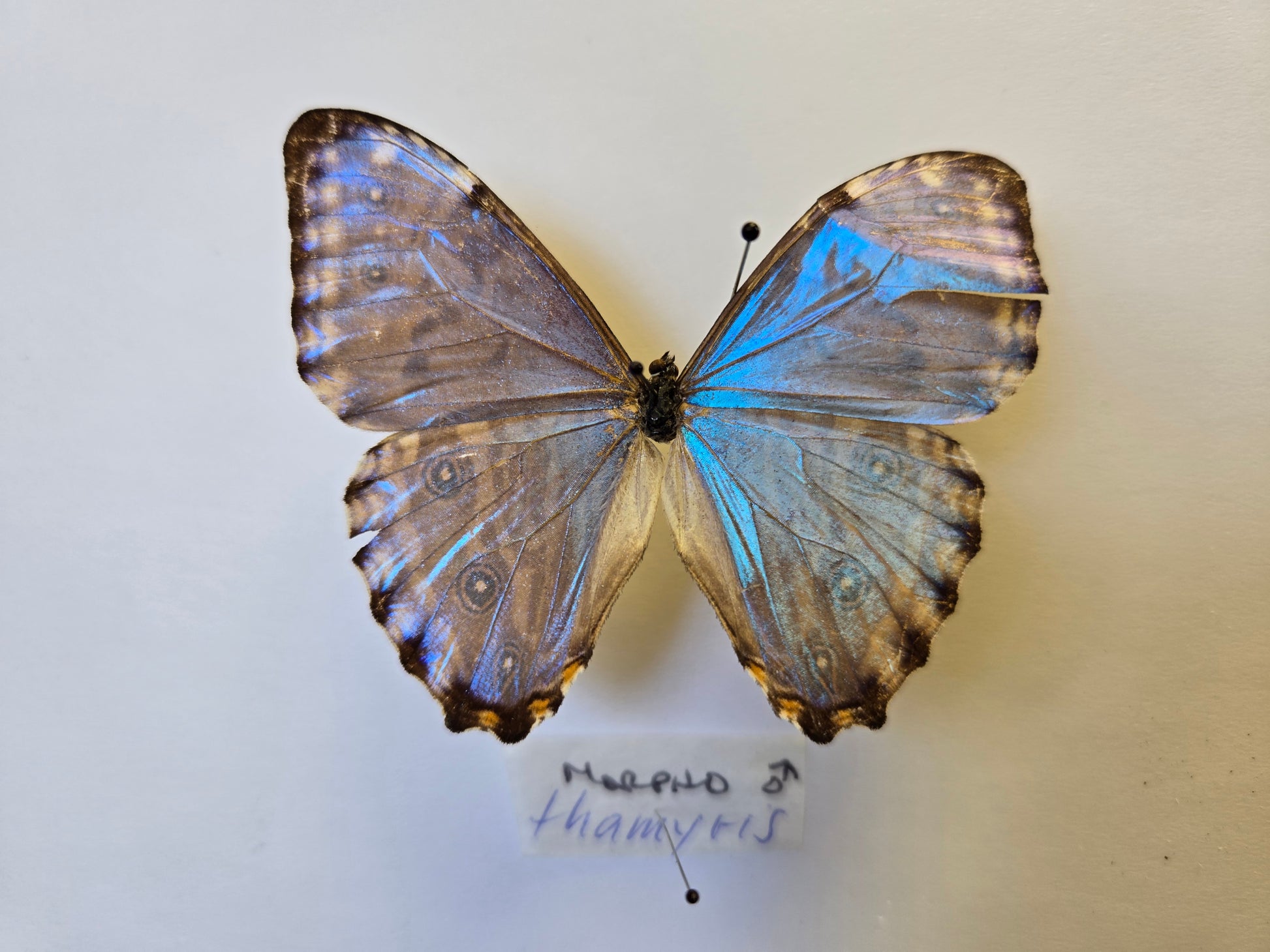 Spread Morpho portis thamyris, great colors, but one forewing is bent