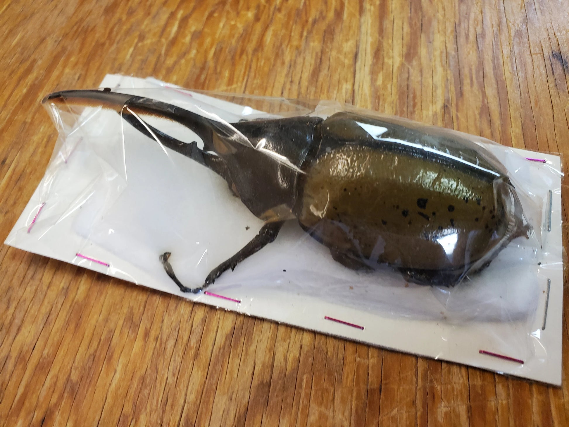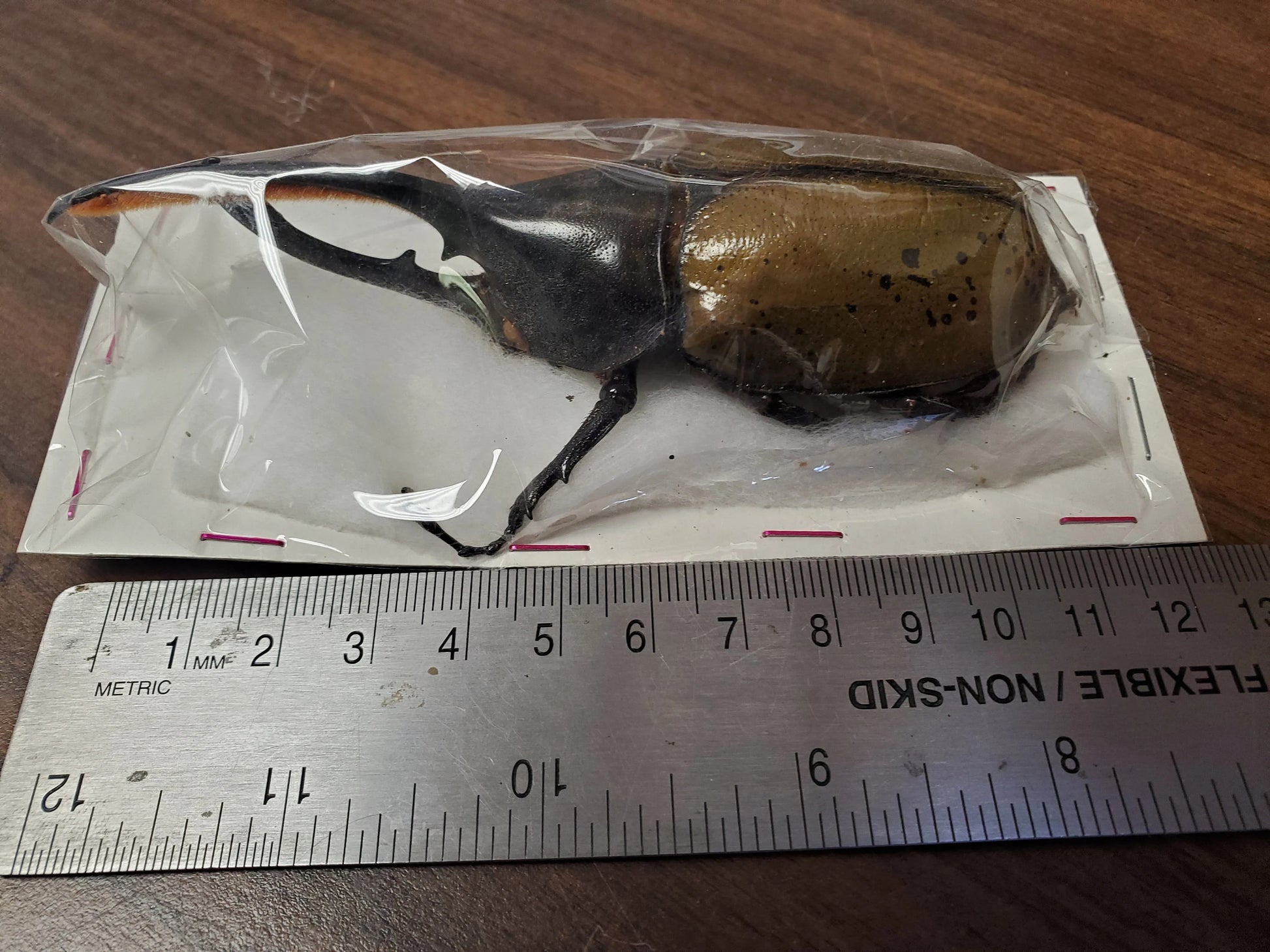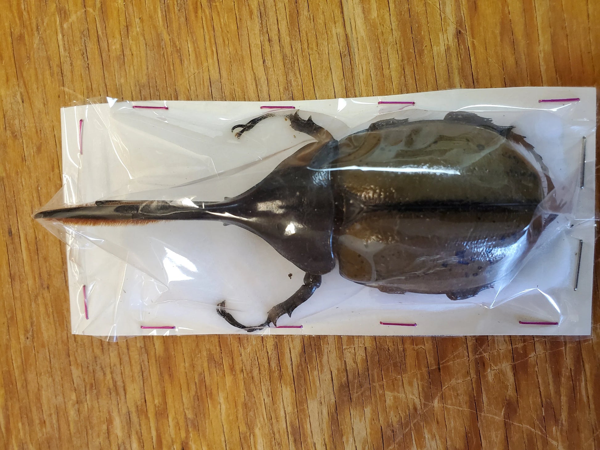 An EXCEPTIONALLY large beetle! Dynastes hercules occidentalis is a very large, very sought after 'rhinoceros' beetle with an extremely long 'horn'.