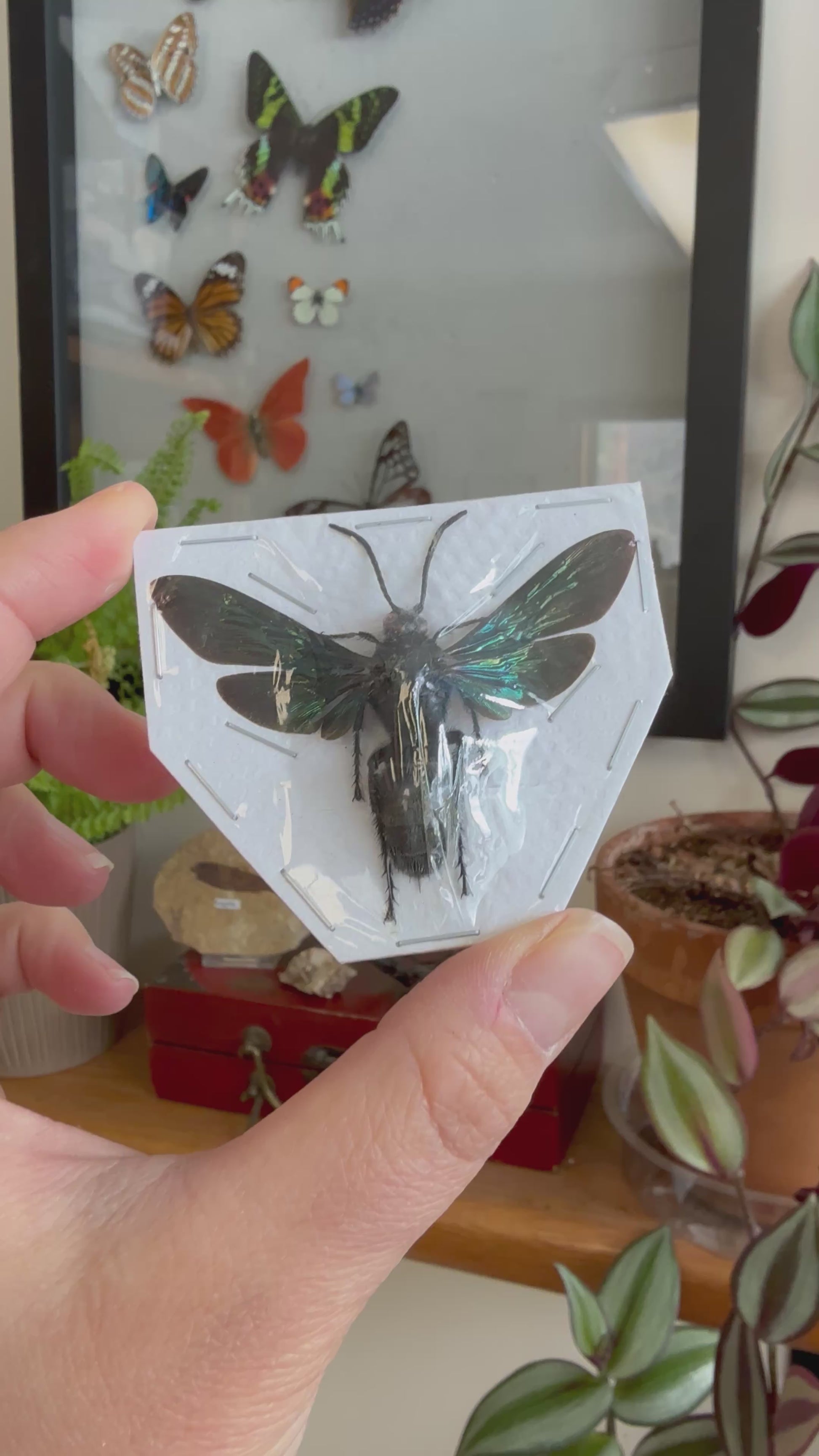 An Awesomely huge hornet! Real, dead, dried, preserved Megascolia velutina, giant wasp (Male). These come with wings already spread open, so they are ready to be immediately framed, used in artwork, or added to your collection.
