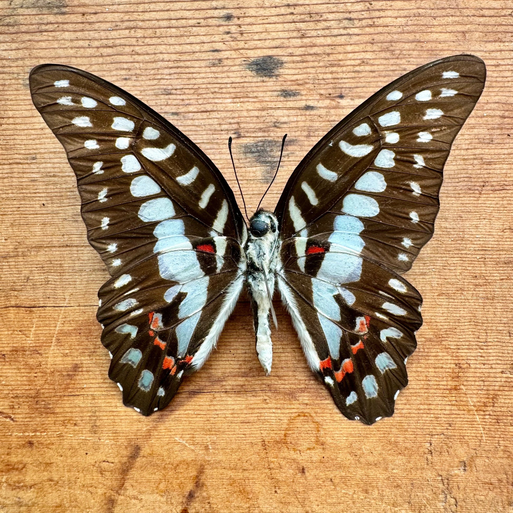 Graphiums are known for their almost stained-glass like wings. The Great Jay has beautiful blue-green wings and it’s a great one to use in artwork or to add a new species to your collection!