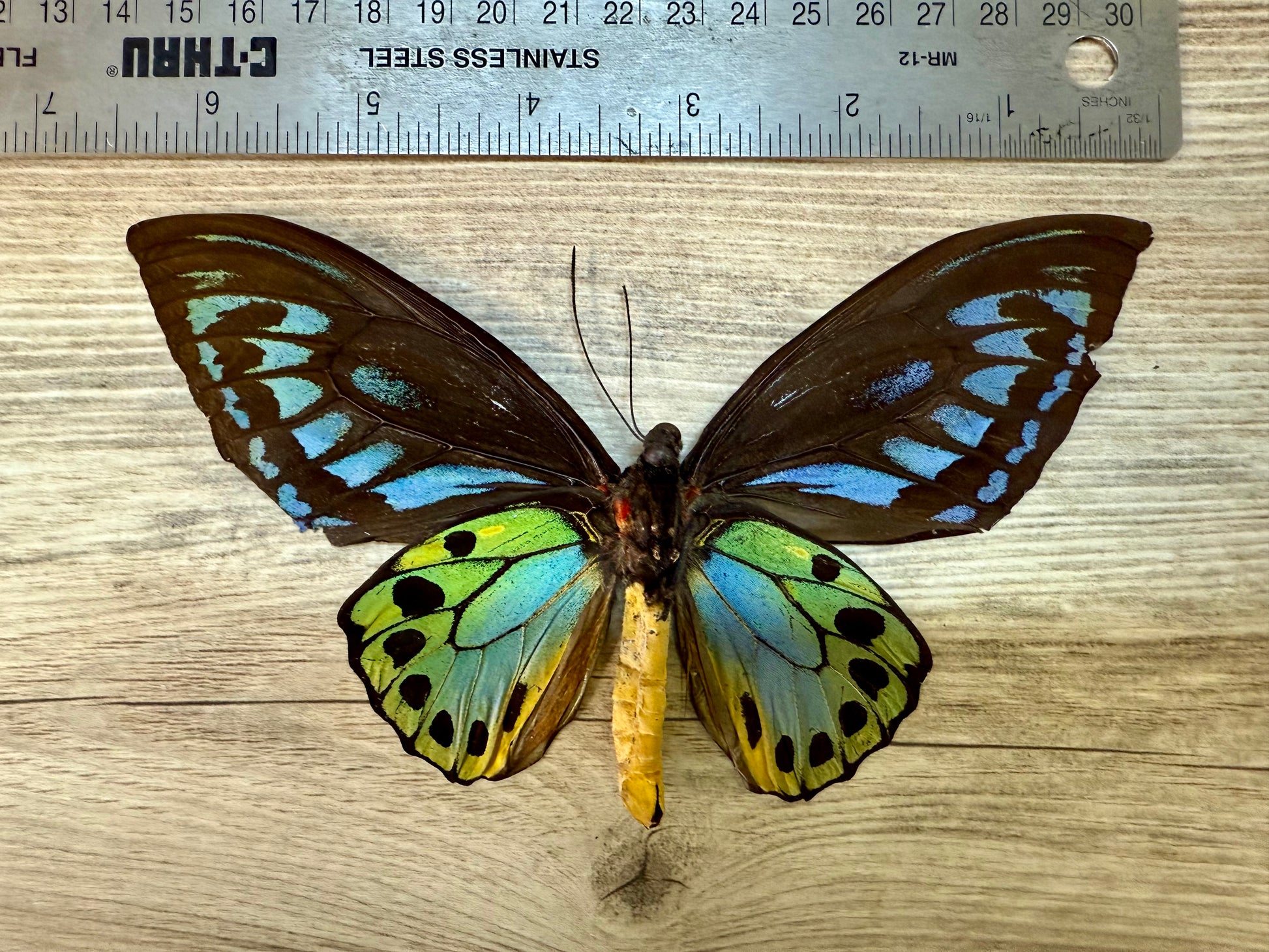Ornithoptera priamus urvillianus SPREAD Blue Birdwing Butterfly A2 Condition