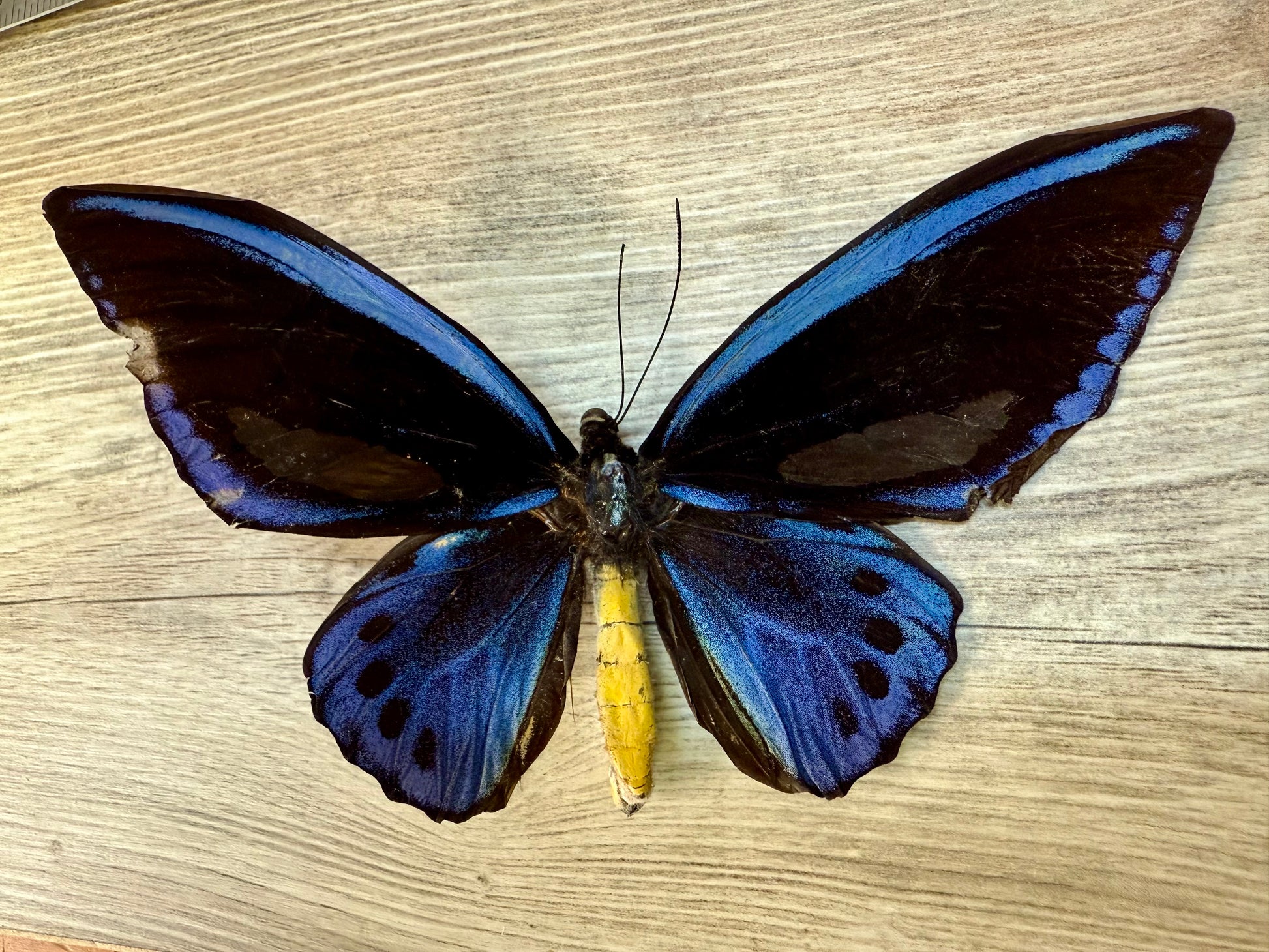 This big beautiful birdwing butterfly is a rare find! Sourced from an older collection.