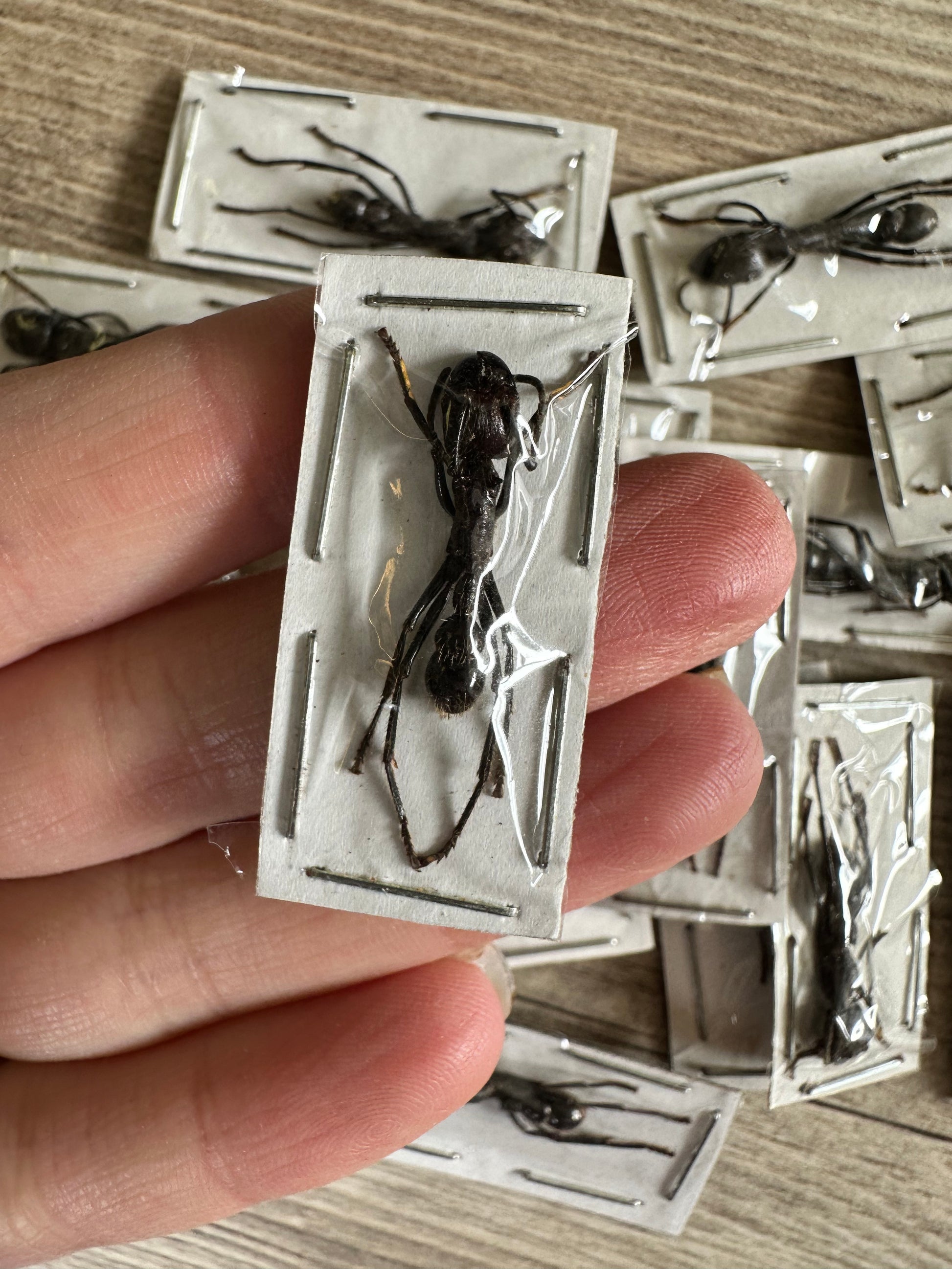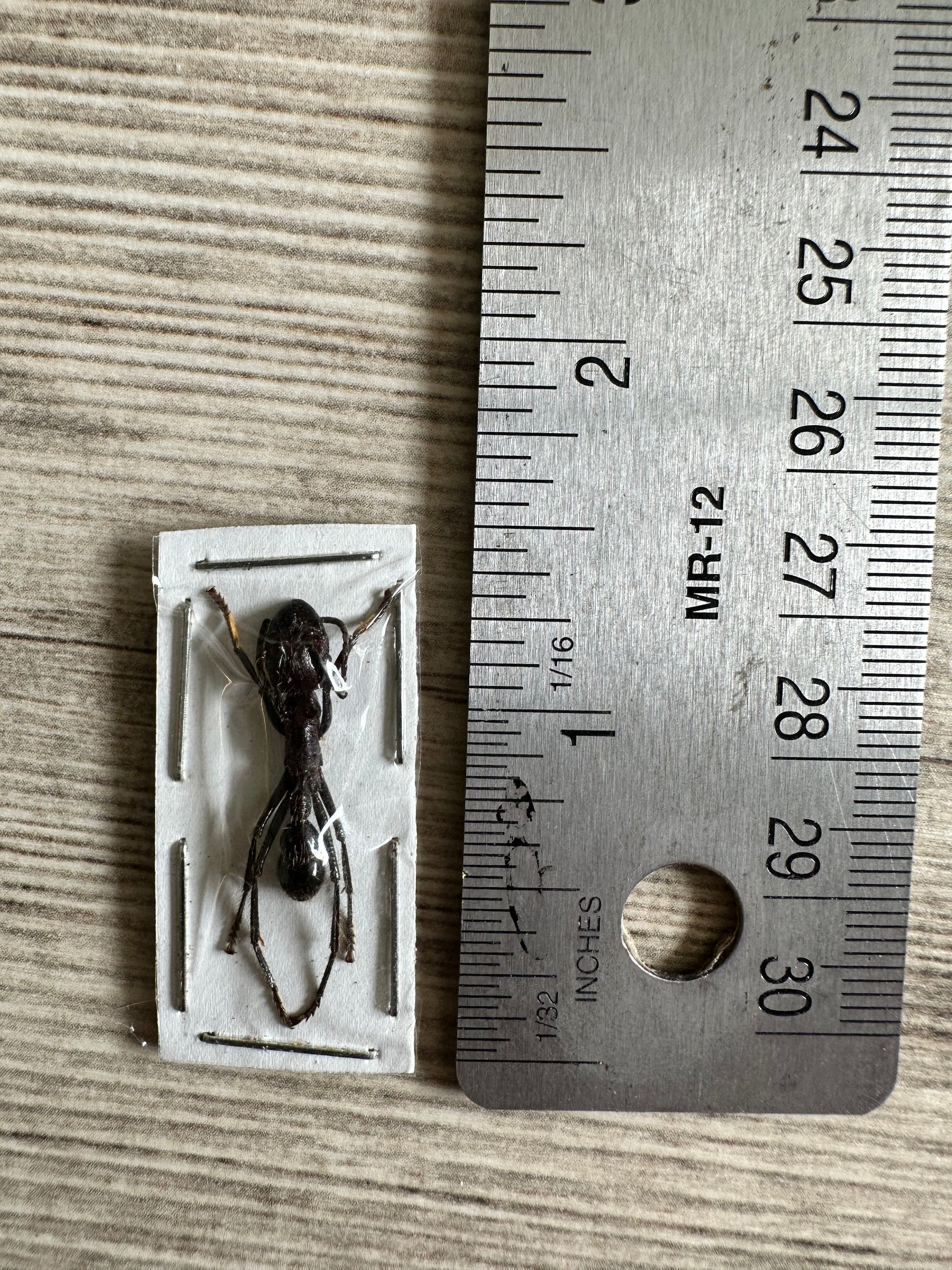 The infamous Bullet Ant! The Bullet Ant 'Paraponera clavata' measures approx. 1" long (body) and is known for its EXTREMELY PAINFUL sting. These are unspread as seen in listing photos.