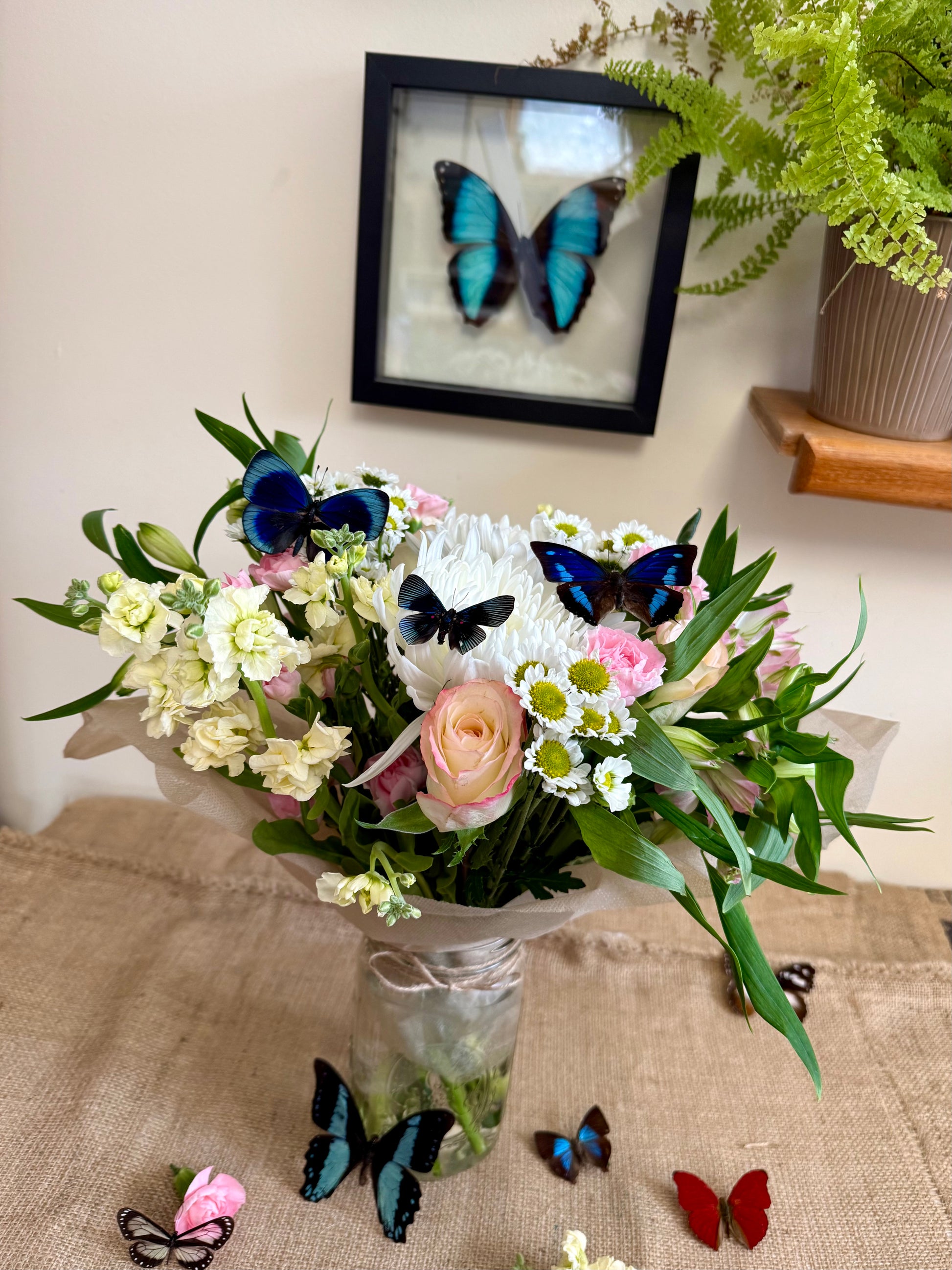We can accommodate special requests! Please send us a message and we can work with you on color, size, and species. Based on what we have in inventory, butterflies may take an additional 2 weeks to prepare for you.