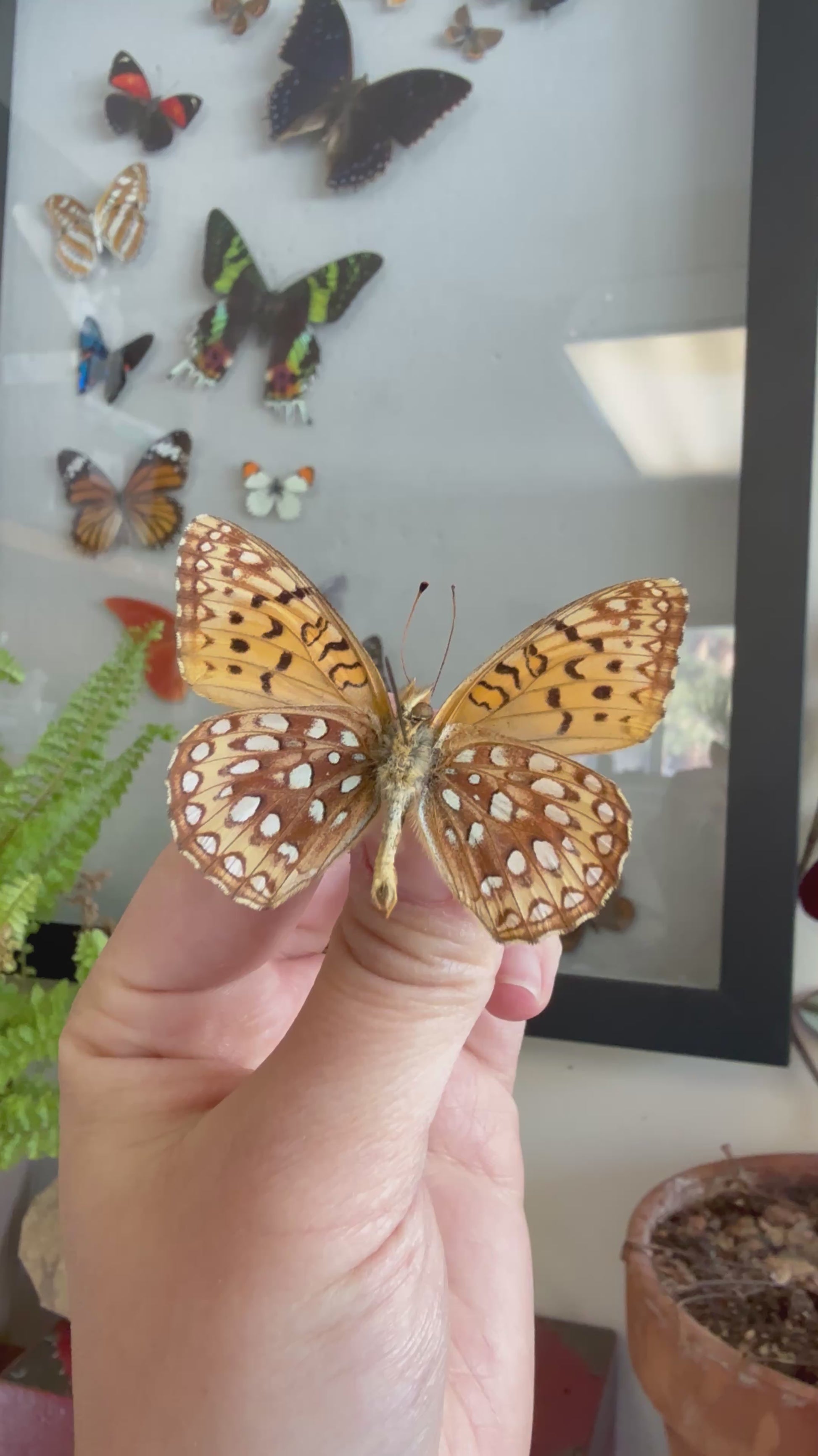 REAL dried, preserved Fritillary species butterflies with wings spread open!