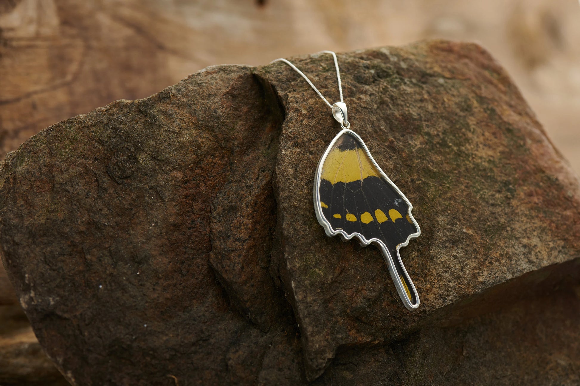 REAL King Swallowtail Butterfly Wing Pendant in 99.5 Fine Silver with 18"-22" Adjustable Sterling Silver Chain