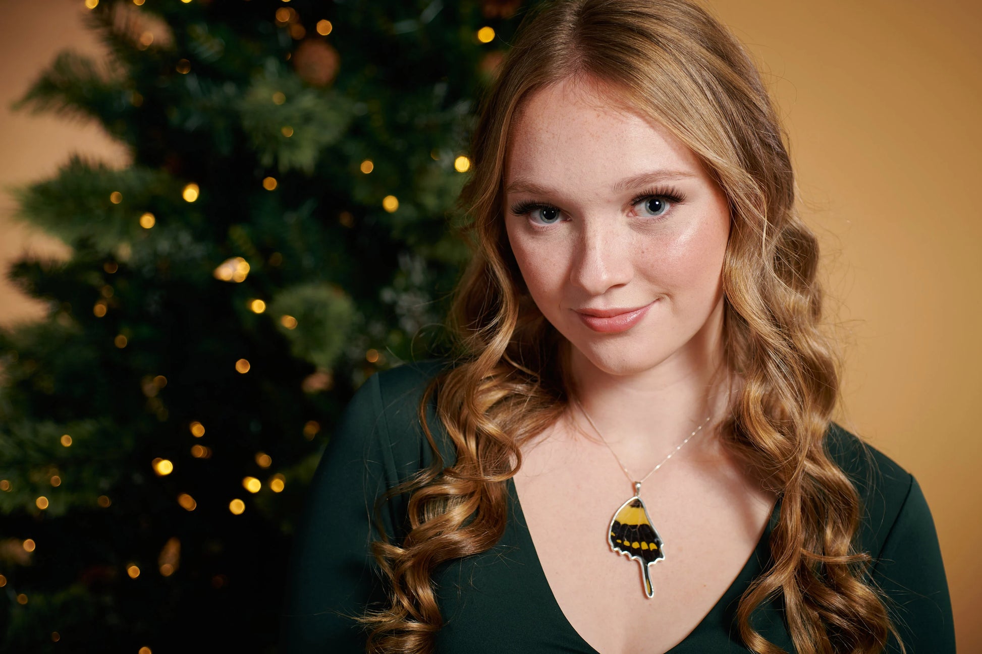Every butterfly is unique and each pendant may have slight variations. The design also allows both sides of the butterfly wing to be seen.