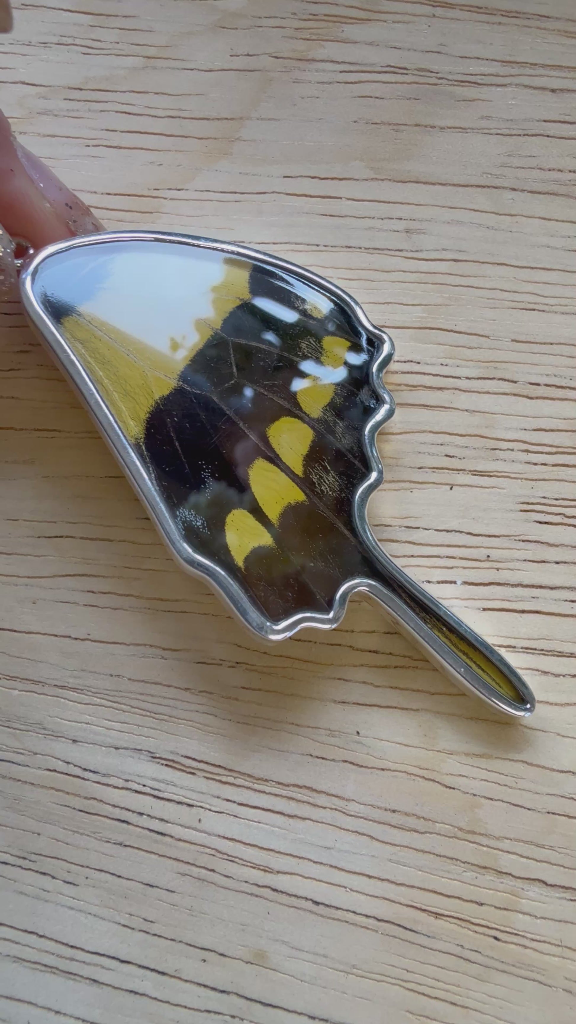Damaged King Swallowtail Butterfly Wing Pendant in 99.5 Fine Silver Lot 101