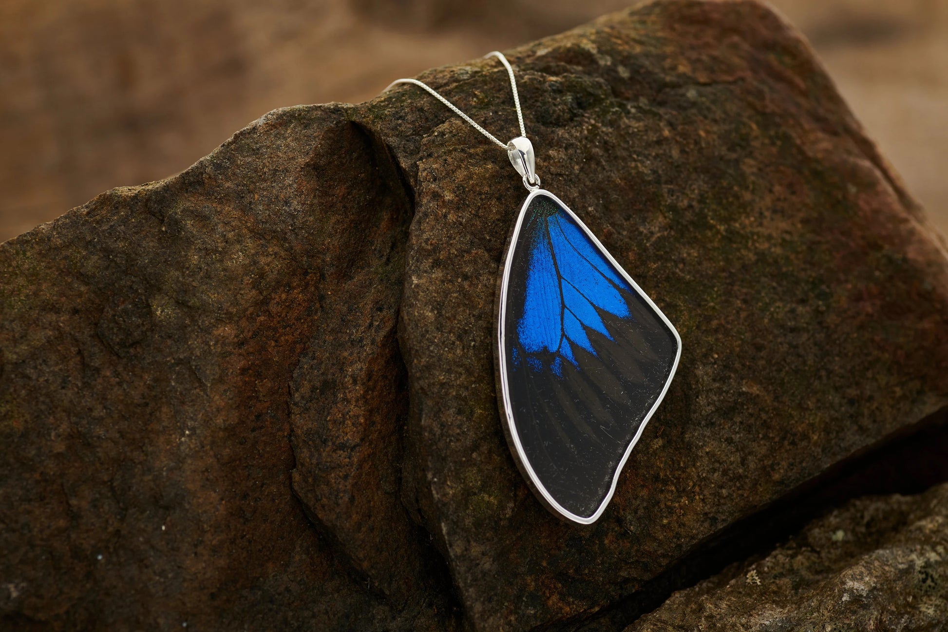 Every butterfly is unique and each pendant may have slight variations. The design also allows both sides of the butterfly wing to be seen.