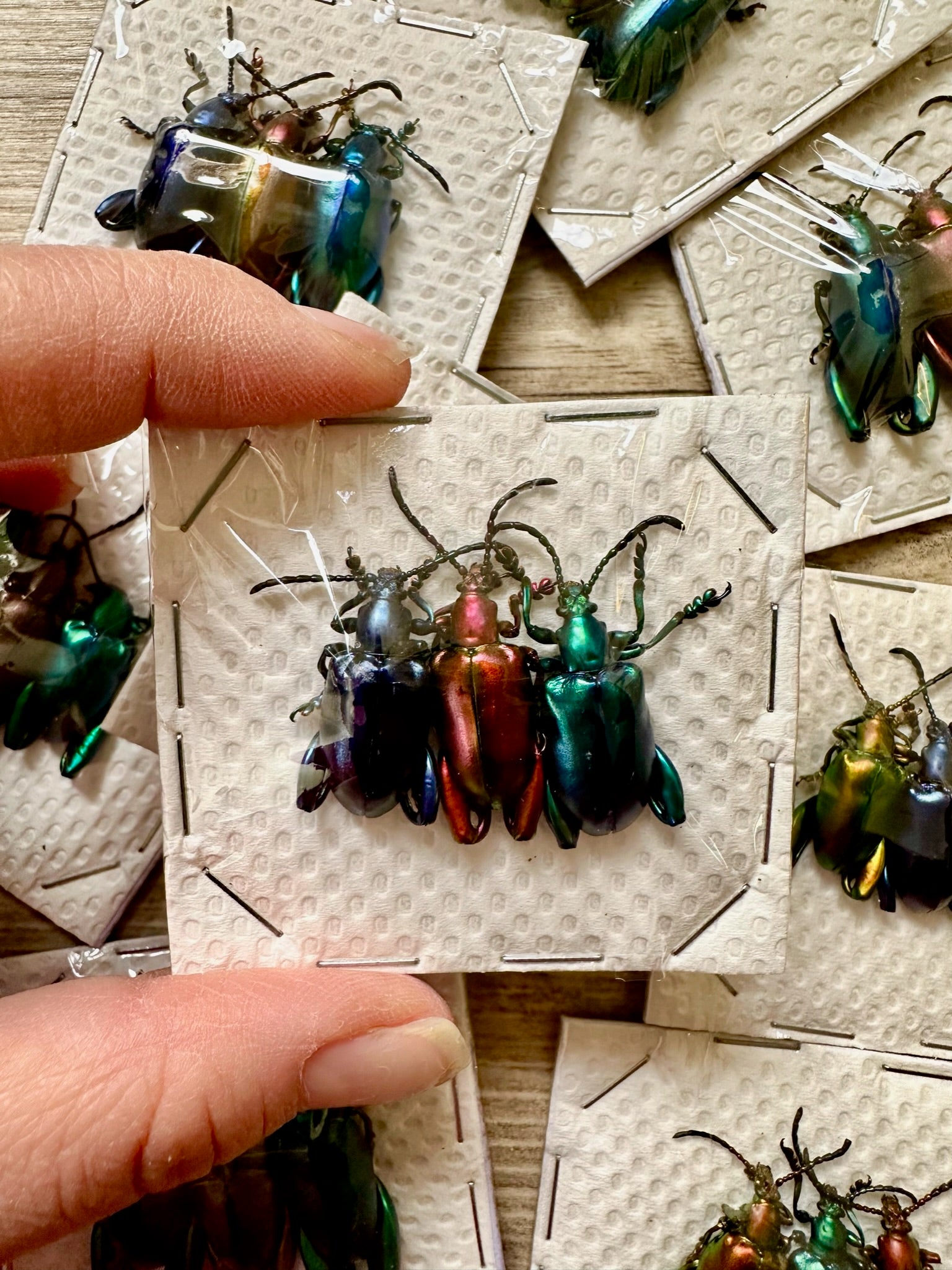 A set of 3 different colors of the stunning Frog Leg Beetle, a native of Northern Thailand and one of the coolest beetles around.