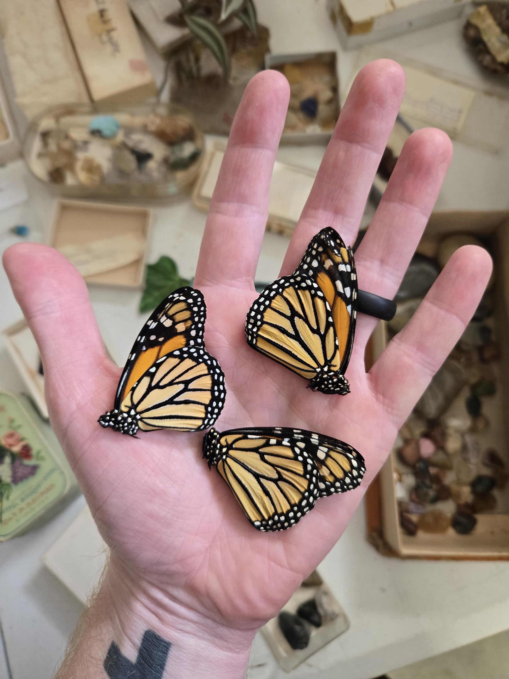 Sale includes one real monarch, random selection of male or female. Shipped unmounted with wings folded closed.