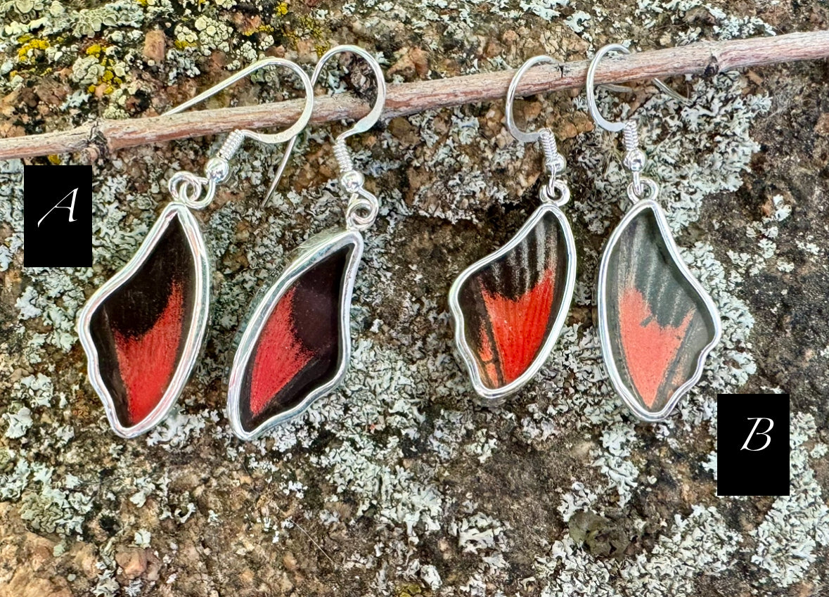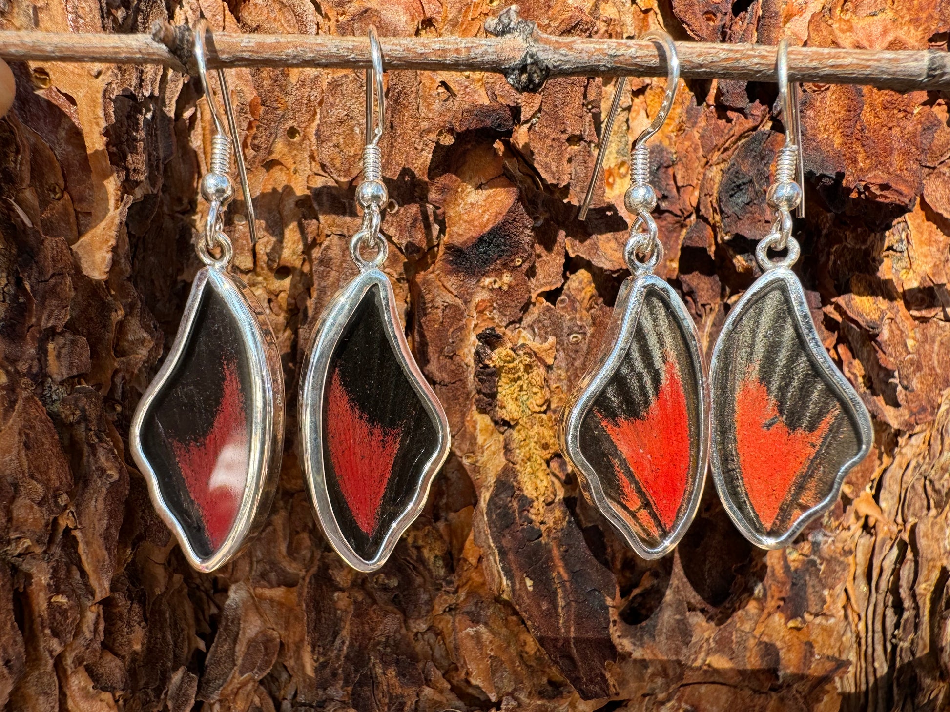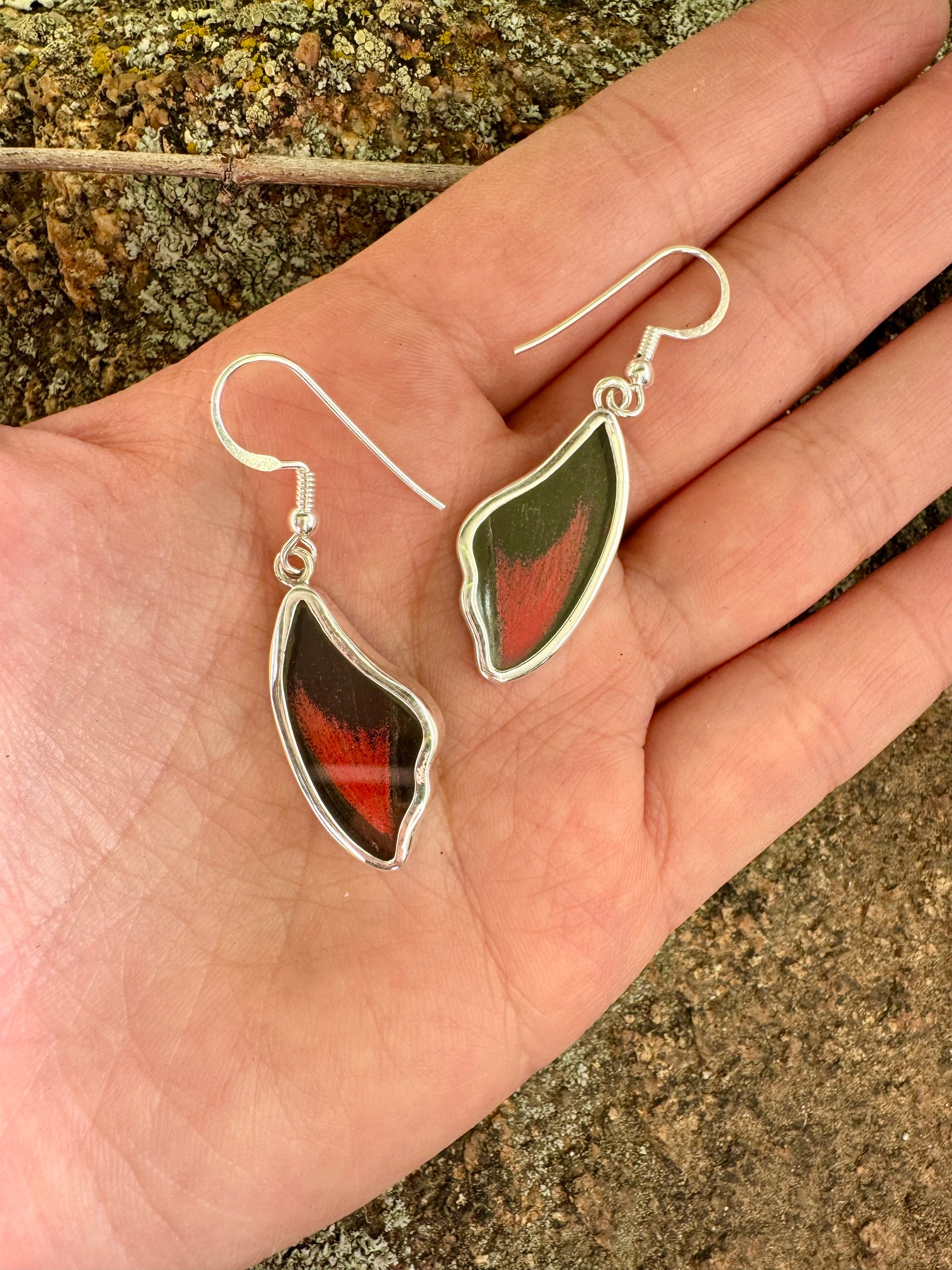 Red Scarlet Butterfly Wing Drop Earrings in 99.5 Fine Silver