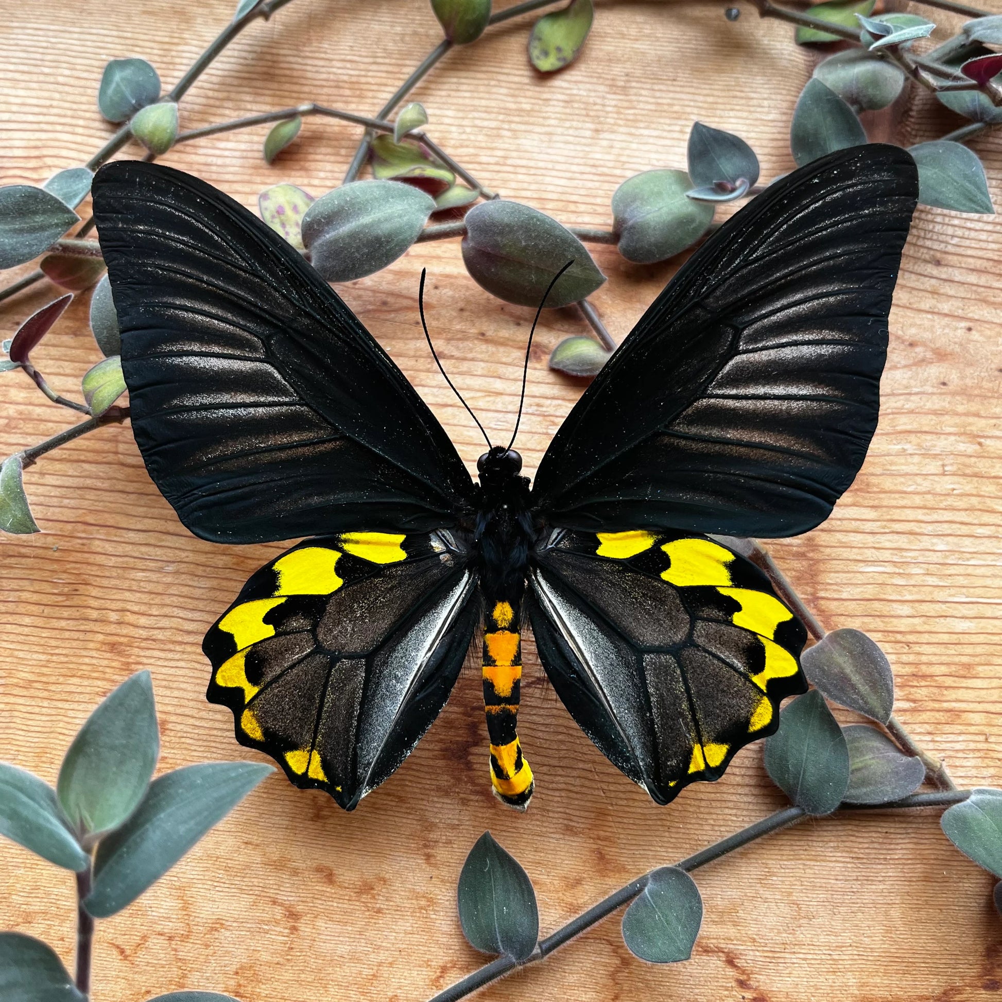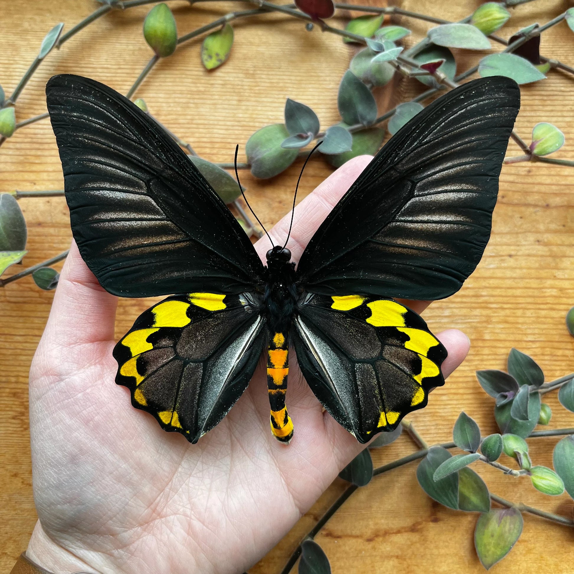 Rare find! Rippon's Birdwing 'Troides hypolitus' male and female PAIR. Both have CITES numbers attached and are from an older collection. Spread picture is a male, unspread picture is the pair you will receive.