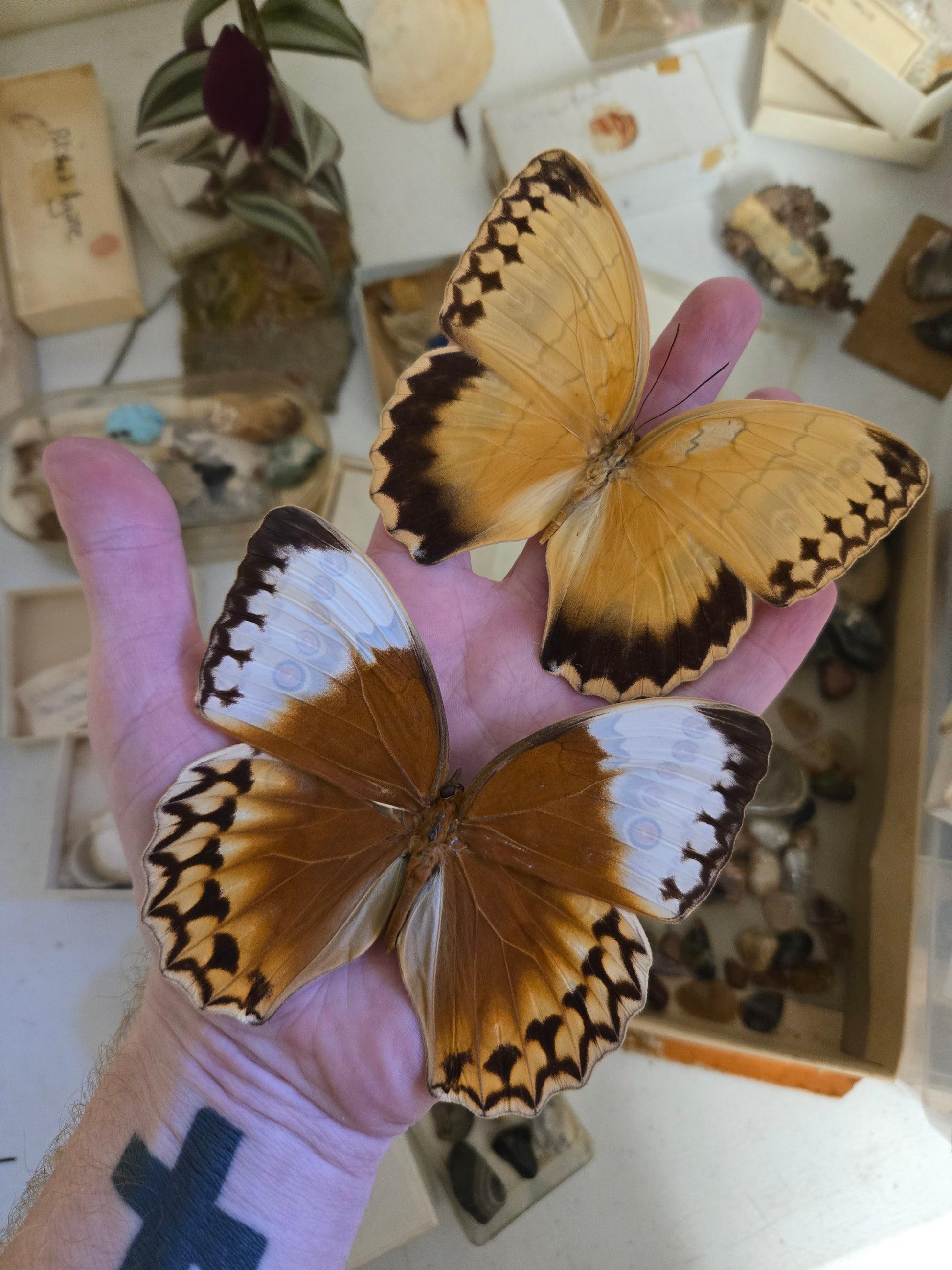 NOTE: Butterflies with wings spread open are sold AS-IS because of the extremely fragile nature of antenna and wings and the extremely rough nature of postal workers.