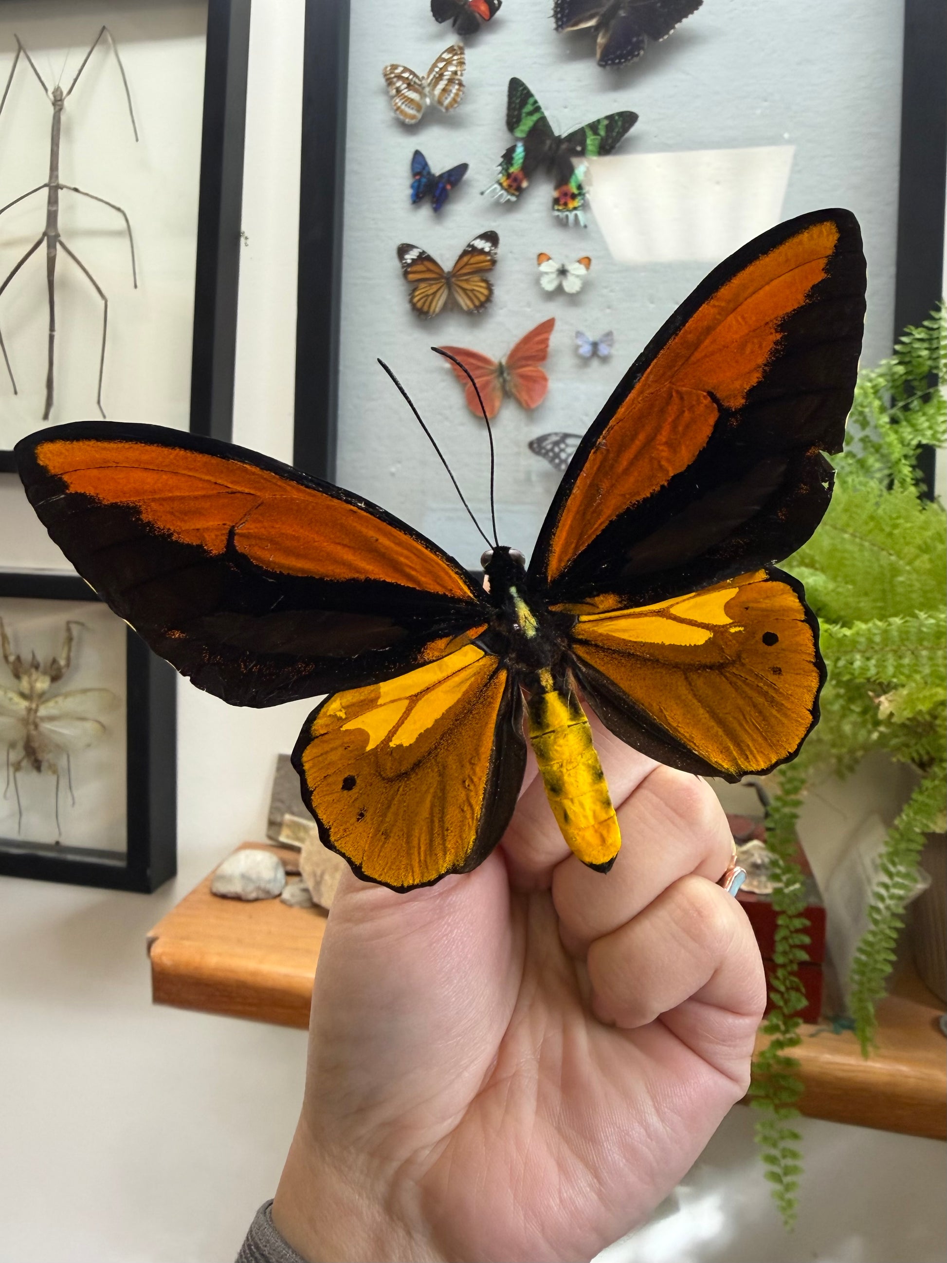 A beautiful Ornithoptera croesus birdwing butterfly. Butterfly pictured will be the one sent.