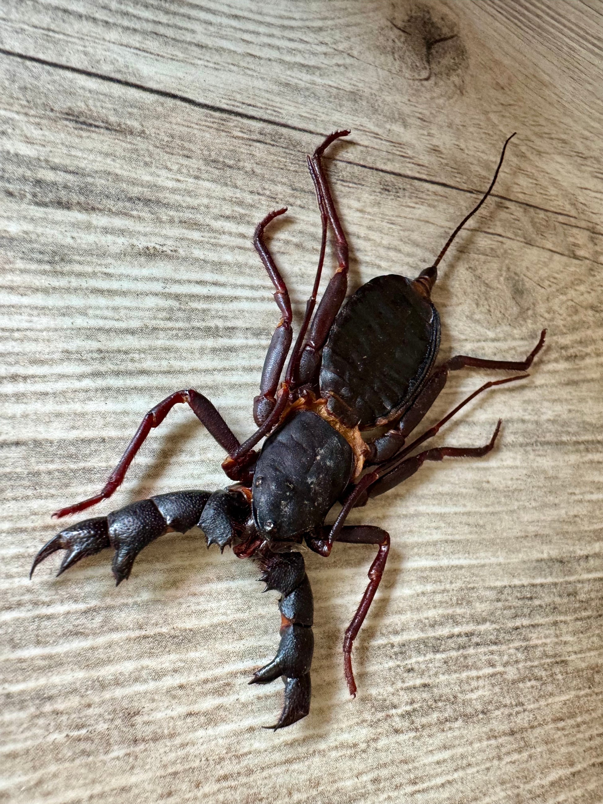 These tail-less whip scorpions, also called giant Vinegaroons are a unique type of arachnid in the order Uropygi.